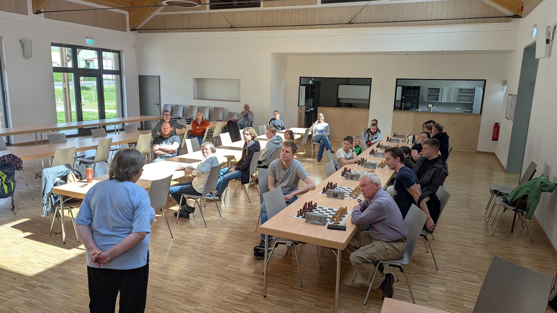Nach drei von 7 Runden ist zwar noch kein Mannschaftssieg gelungen. Allerdings war von Anfang an klar, dass wir auf Setzlistenplatz 18 gestartet, als Außenseiter ins Turnier gehen würden. Wer sich die Mühe macht die Partien anzuschauen, wird aber auch feststellen, dass unsere Vertreterinnen den mitunter um einige hundert DWZ-Punkte stärkeren Gegnerinnen gar nicht so chancenlos ausgeliefert waren. Mit etwas mehr Glück oder auch Konzentration war der eine oder andere halbe oder gar ganze Punkt machbar. Hätte, hätte ist nicht das Thema. Die Stimmung ist trotz der Resultate am Brett ganz in Ordnung. Am Samstag waren wir auf dem Wintermarkt im Zentrum von Chemnitz. Lichterglanz und Lifemusik unter den meterhohen Weihnachtspyramiden sorgten für eine angenehme Abwechslung nach anstrengenden Partien des Tages. Wer die Partien anschauen möchte findet diese unter: https://www.deutsche-schachjugend.de/2025/dvm-u16w/sc-oberland/ . F.-P.R.